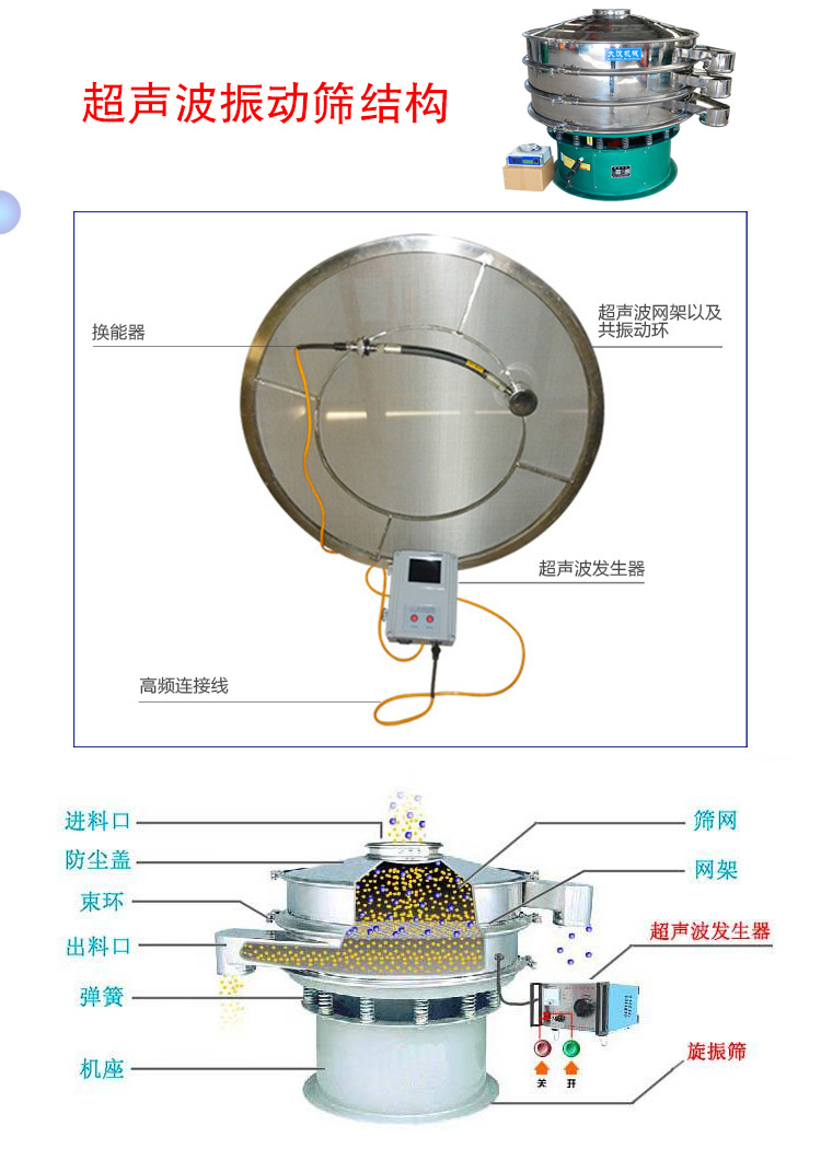 超聲波振動篩與旋振篩的區(qū)別如下: