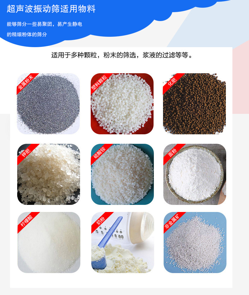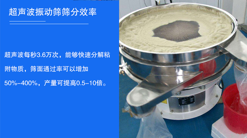 超聲波振動篩超聲波振動篩每秒3.6萬次,能夠快速分解粘附物質(zhì),篩面通過率可以增加50%-400%,產(chǎn)量可提高0.5-10倍。