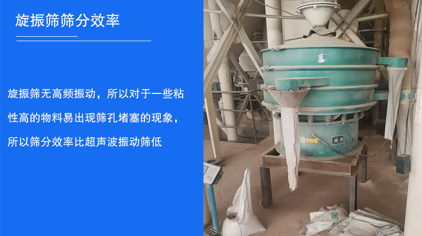 而旋振篩無高頻振動,所以對于一些粘性高的物料易出現(xiàn)篩孔堵塞的現(xiàn)象,所以篩分效率比超聲波振動篩低。