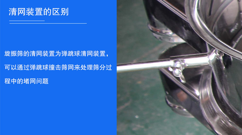 旋振篩的清網(wǎng)裝置為彈跳球清網(wǎng)裝置,可以通過彈跳球撞擊篩網(wǎng)來處理篩分過程中的堵網(wǎng)問題。